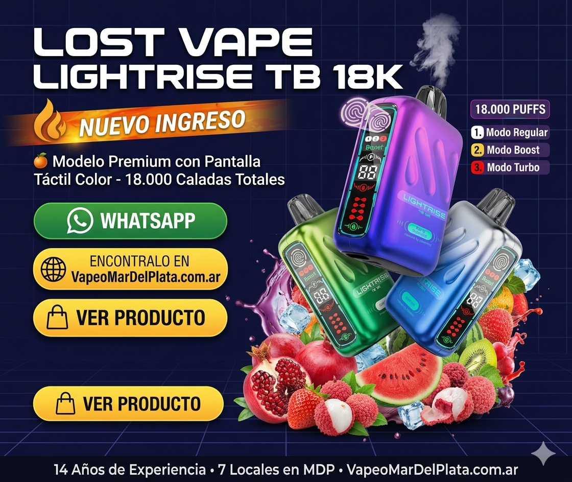¿Estás buscando lo último en innovación para tu experiencia de vapeo? En Vapeo Mar del Plata te presentamos el Lost Vape Lightrise TB 18K, un dispositivo que redefine lo que un pod descartable puede hacer. Combinando la elegancia y calidad característica de Lost Vape con una tecnología de vanguardia, este equipo está diseñado para quienes no se conforman con menos.